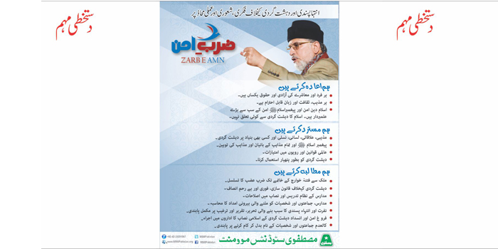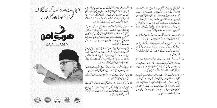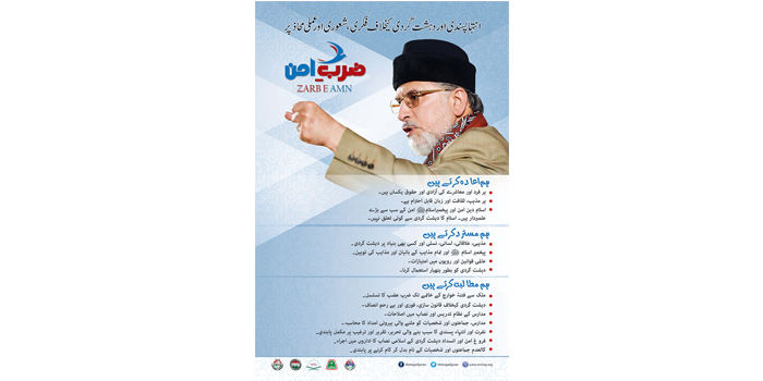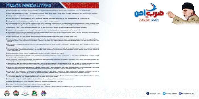 Download Print Material - Zarb-e-Amn Logo Format: PNG | Size: 137 KB Picture - Dr Tahir-ul-Qadri Format: PNG | Size: 15.2 MB Poster 20x30 Format: TIF | Size: 25.3 MB Facebook Cover Format: JPG | Size: 445 KB Flex Peace Resolution - EN Format: TIF | Size: 4.62 MB Peace Resolution - UR Format: TIF | Size: 3.83 MB Peace Resolution - UR Format: TIF | Size: 2.30 MB Zarb-e-Amn Handout Format: TIF | Size: 11.9 MB Signature Campaign - MSM Format: CDR | Size: 6.45 MB